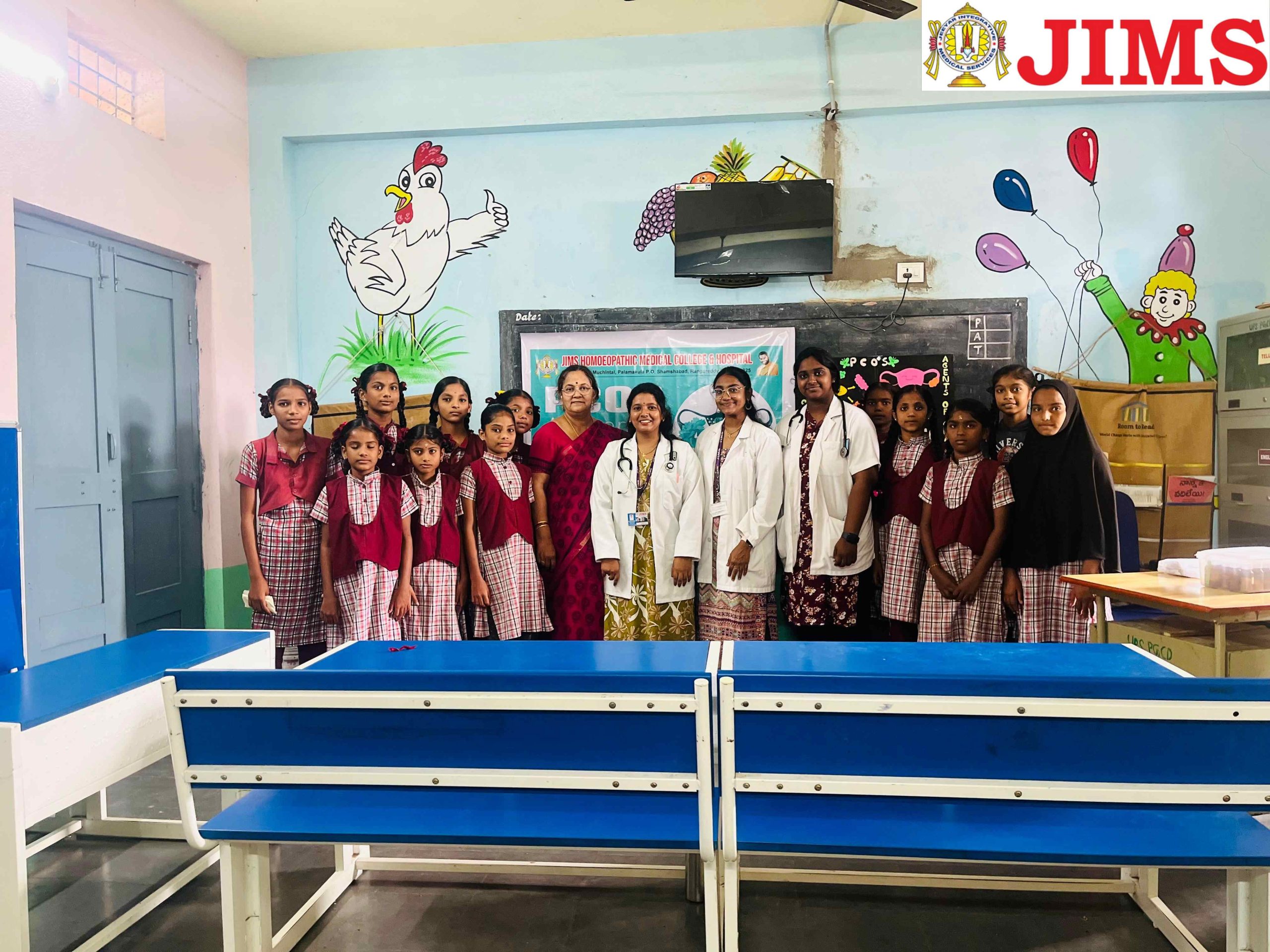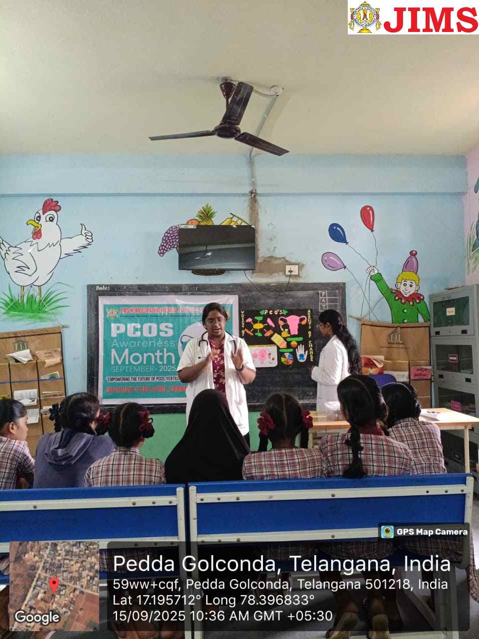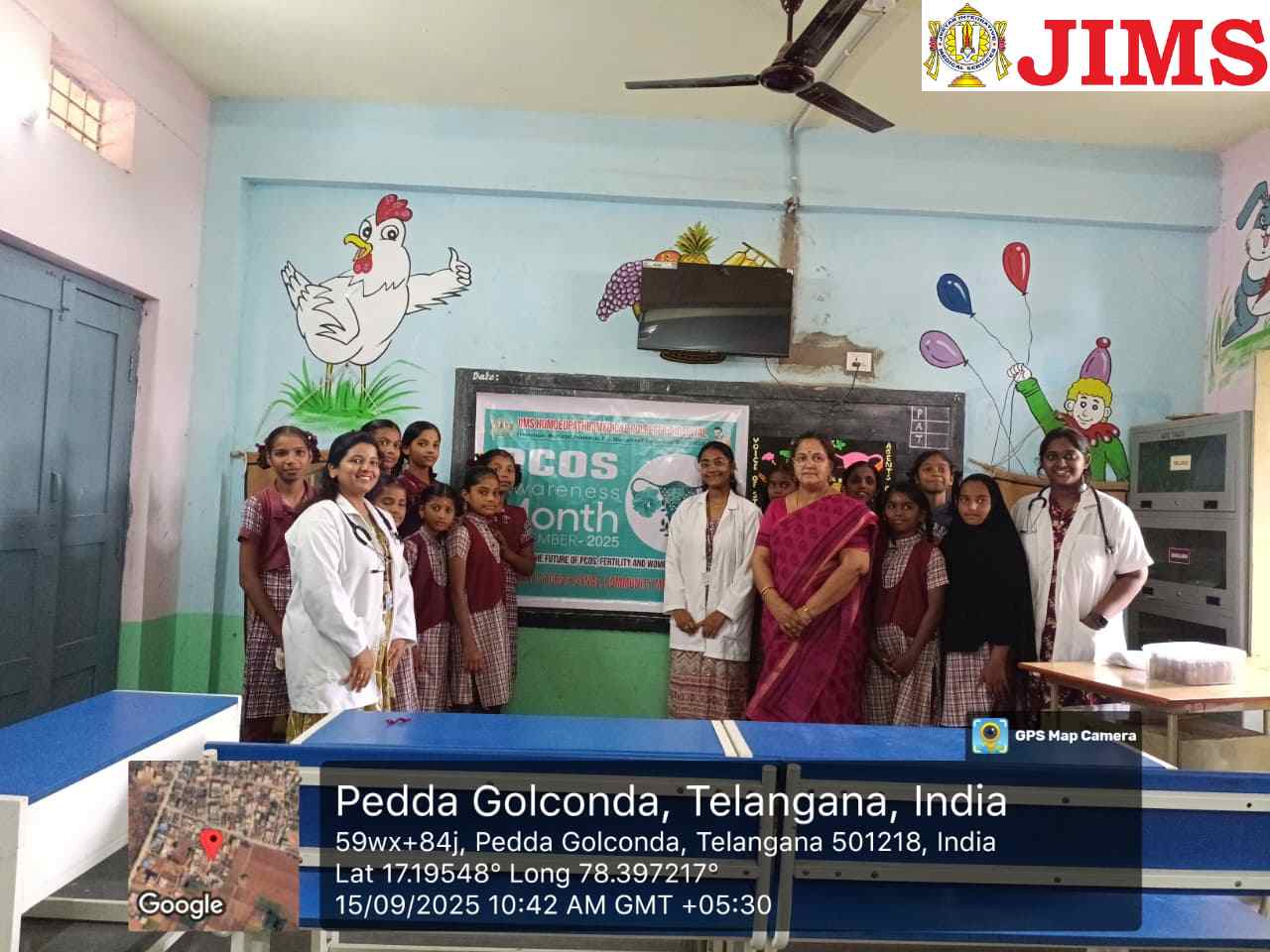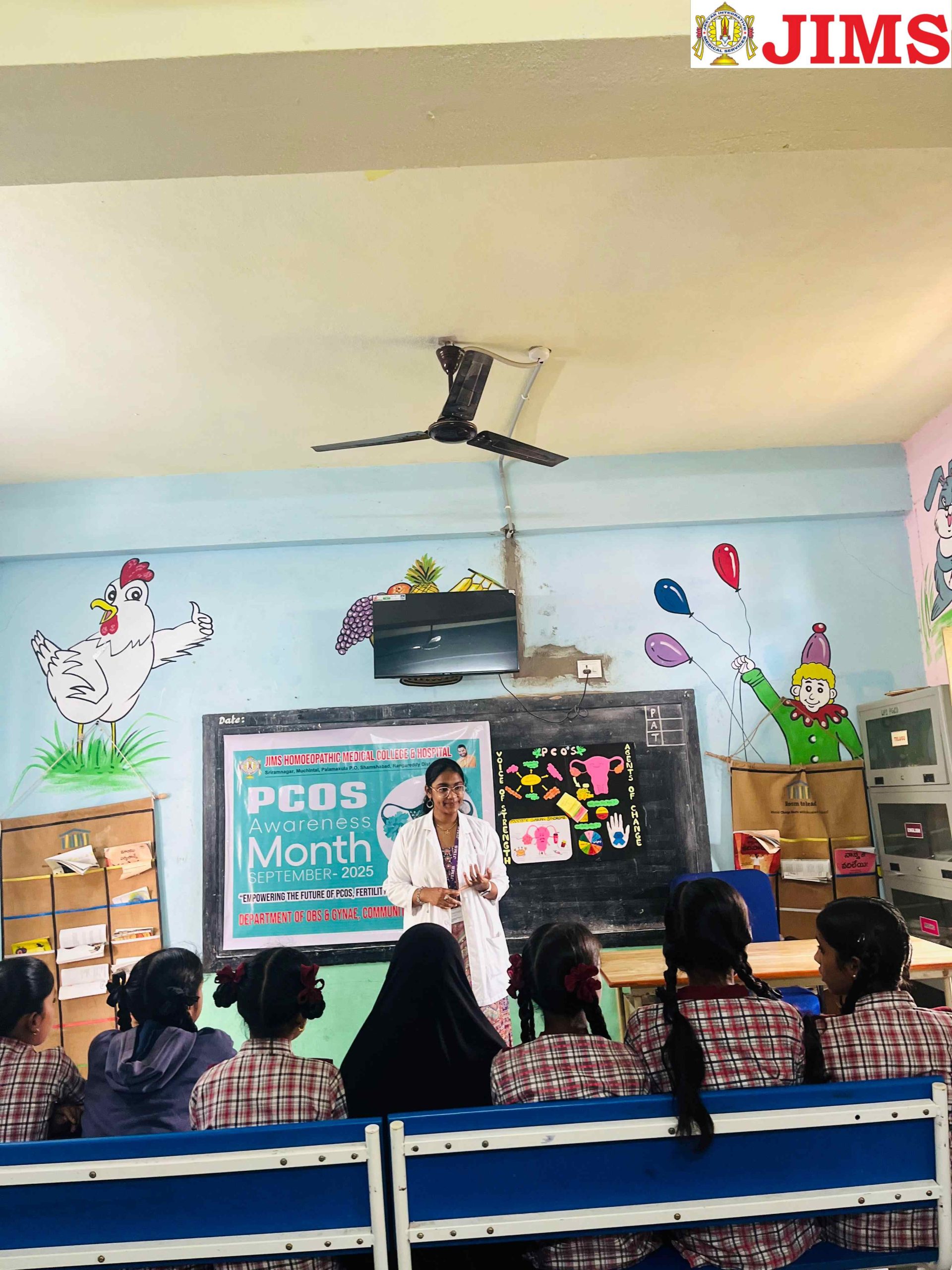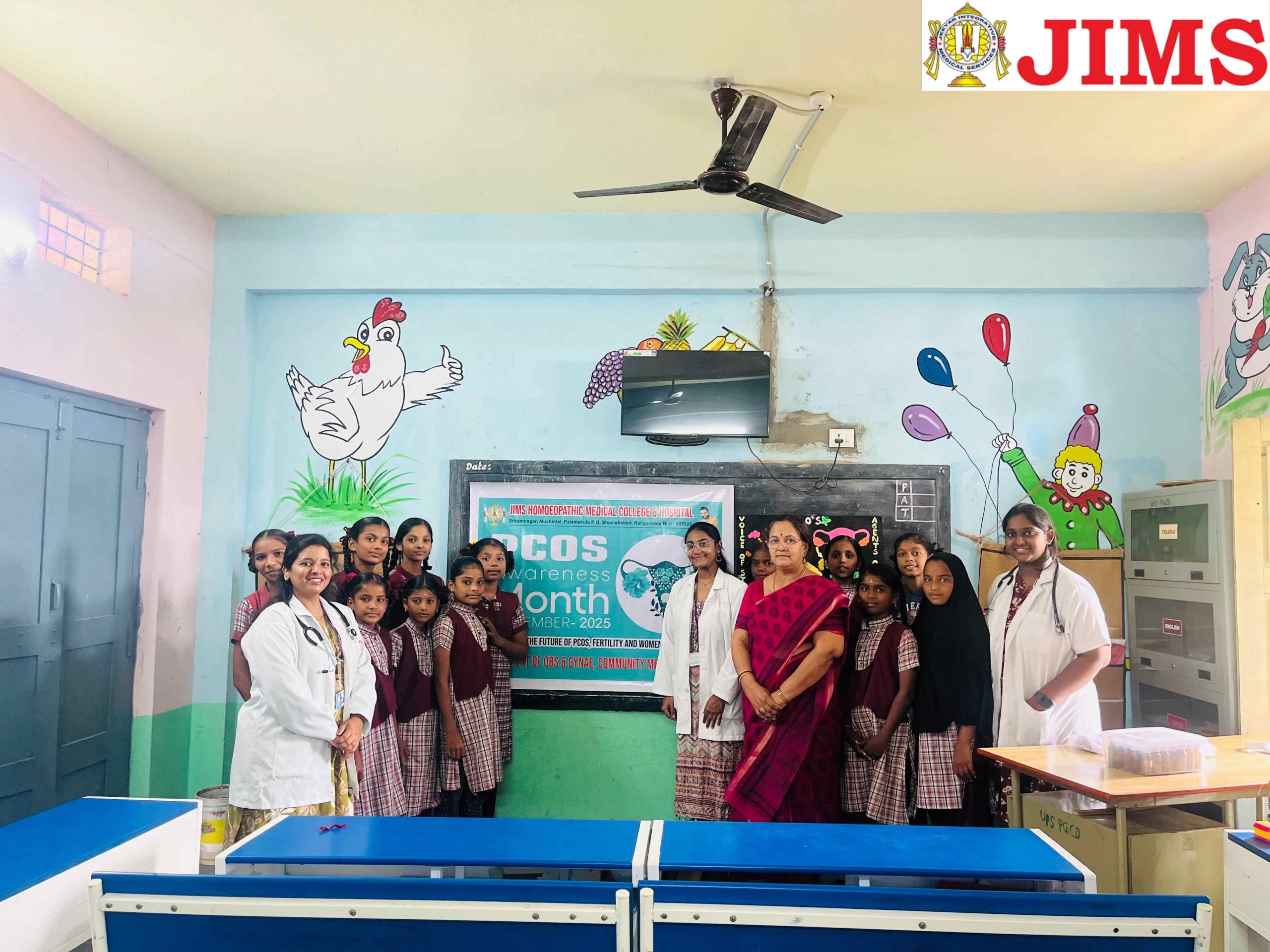 As part of PCOS Awareness Month 2025, the Department of Obstetrics & Gynaecology, in collaboration with the NSS Unit of JIMS Homoeopathic Medical College & Hospital, organized a PCOS Awareness Programme on 15th September 2025 at the Upper Primary School, Peddha Golconda village, Shamshabad Mandal, Ranga Reddy District.